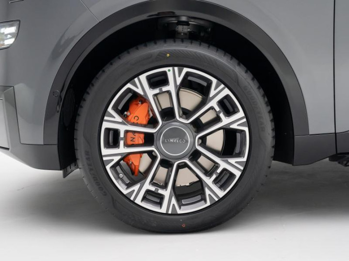 实拍车型配备21英寸光翼轮毂,搭载275/45R21固特异轮胎和橙色刹车卡钳。另外根据资料,新车还会有20英寸光旋轮毂和21英寸光晖轮毂(低风阻)可选。