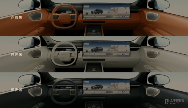 其次车内首次配备金属珠光面料,半透明与真空电镀呈现3D景深。仿麂皮织物&仿麂皮PU模拟天然触感,拥有透气性佳、耐磨抗撕裂等特点。在配色上则有日光米、赤霞橘、星夜蓝可选。