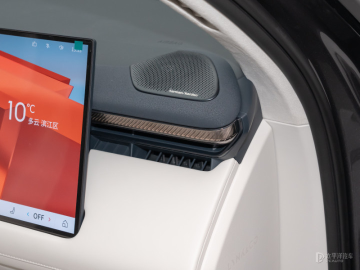 主副驾共享的30英寸6K一体式天际屏,32:10黄金比例搭配沉浸式6K清晰度,实现无边框多视角分屏体验。其次实拍车型配备哈曼卡顿音响和前排无线充。最后车顶配备总面积>2.16㎡全景天幕。