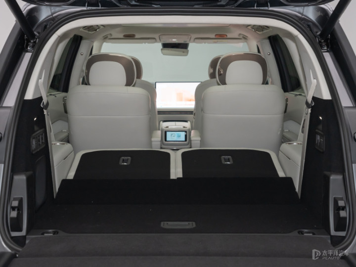常规六座状态下后备箱容积为300L,下方隐藏20L储物格;官方宣称三排座椅调节后可装5个20寸行李箱。而放倒座椅能形成一个全平的地台,满足多场景储物需求。